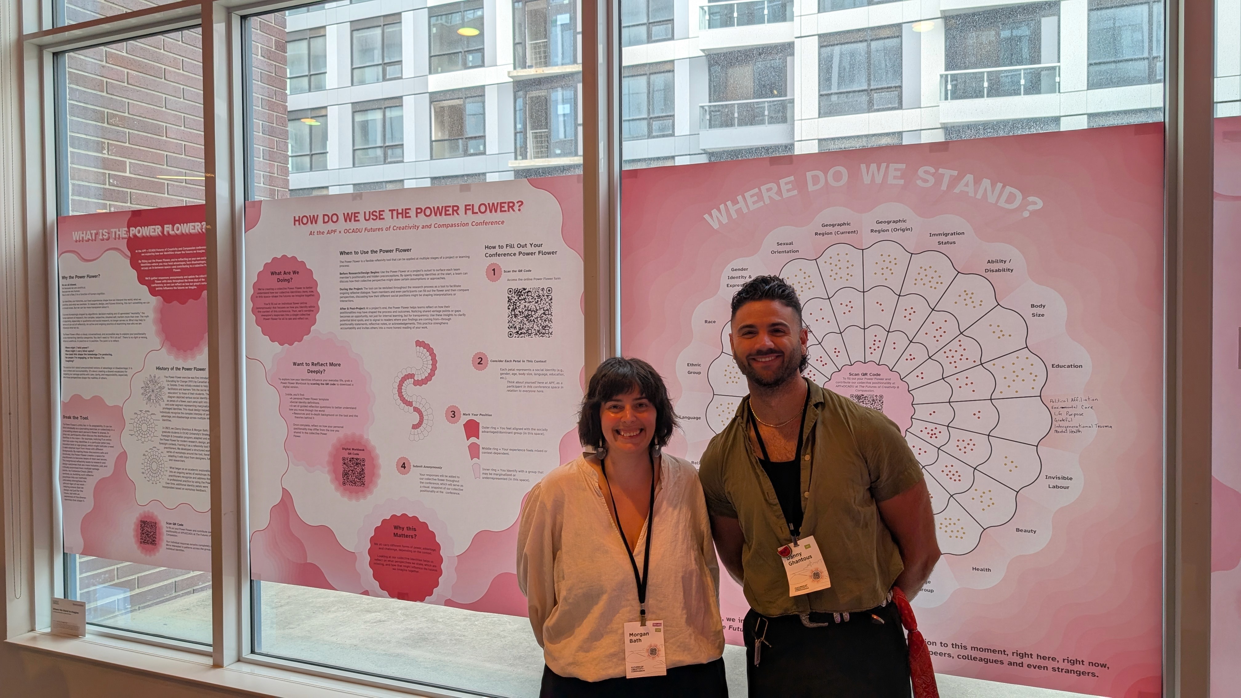 The Anticipation Conference marked the first time the Power Flower was used outside the classroom. The participants were international, multidisciplinary, and unfamiliar with both the tool and, in some cases, the concepts of positionality and intersectionality. Before this event, Danny and I hosted three local workshops in Toronto, which became invaluable testing grounds. They taught us how to introduce the tool to people encountering it for the first time and how to create a safe, accessible entry point into potentially sensitive reflection.